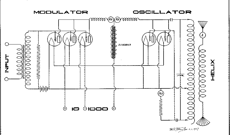 the other plate. This causes current to flow from the helix through the upper tap (which you way mark A