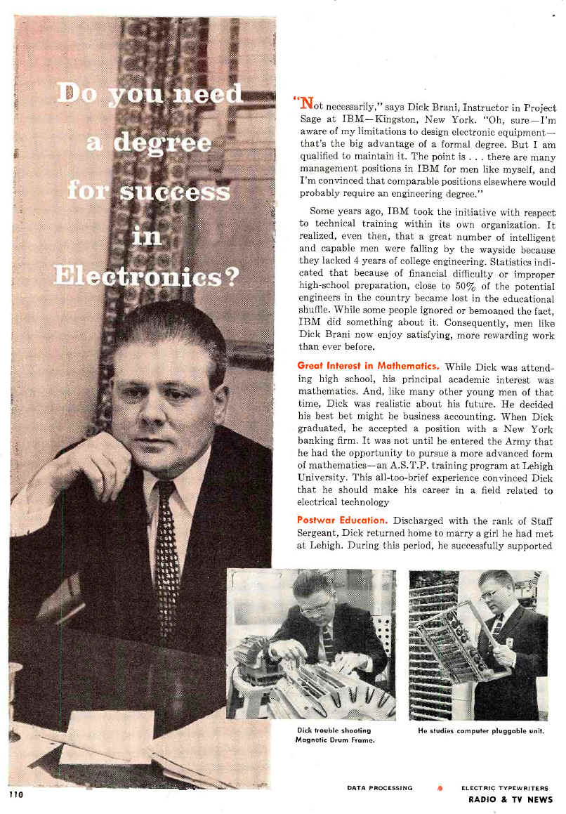 20 WEEKS' COMPUTER TRAINING. Dick Brani joined IBM in the